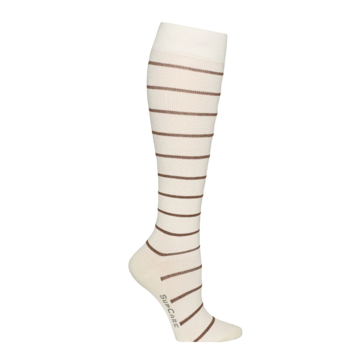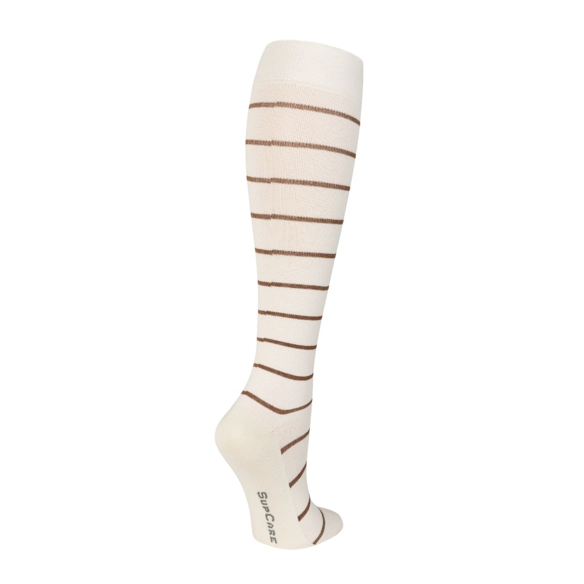 KNELANGE STØTTESTRØMPER I BOMULL, CREME/NOISETTE STRIPET